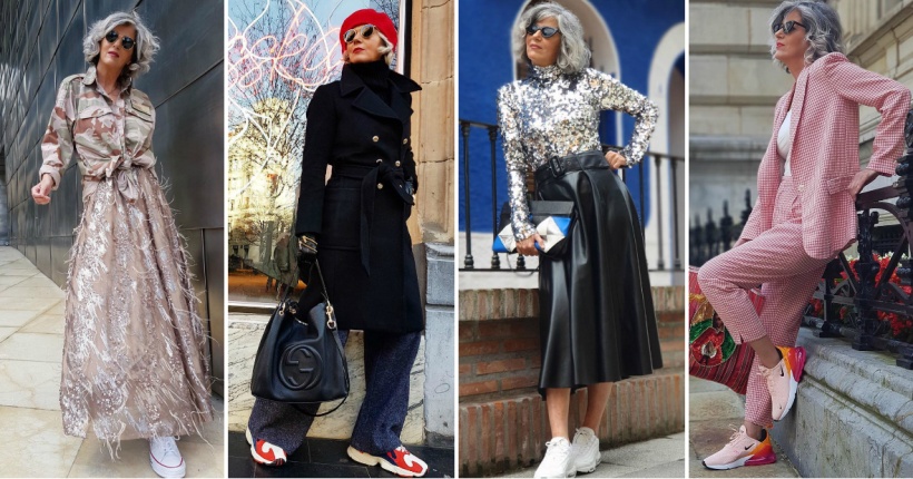 50-годишната блогерка од Шпанија создава шик комбинации со модели по пристапни цени од брендови како H&M, Zara и Mango, а во речиси секој стајлинг вклучува спортски патики.