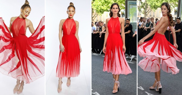 Црвен фустан од најновата модна колекција на Валентино во изминатиот месец беше стилски избор на две славни дами.