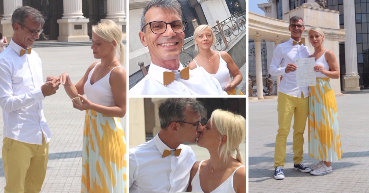 Стилски координирани: Водителот Марко Новески и неговата сакана Цена се венчаа во жолто-бели стајлинзи