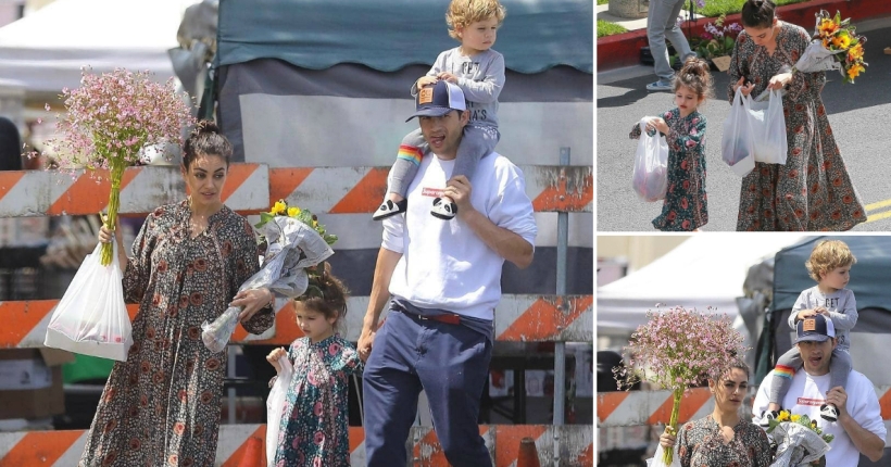 Стилски усогласени: Мила Кунис со ќеркичката во цветни пролетни фустани покрај Ештон и малиот Димитри