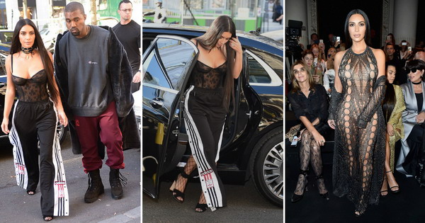 Тоа не е единствениот стајлинг со кој Ким привлече внимание за време на Париската недела на модата. На ревијата на Balmain, таа се појави во проѕирен комбинезон кој премногу го разголи нејзиното тело.