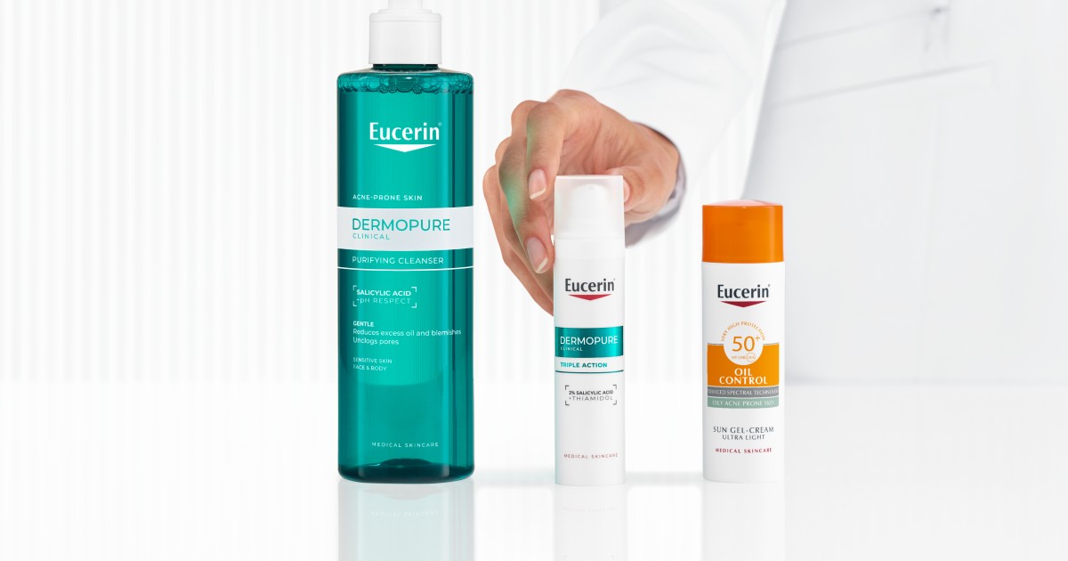 Но, кога влегуваме во ваква битка мора да се разбере дека производите се дизајнирани да адресираат различни аспекти на третманот и превенцијата на појава на акни. Затоа комбинирањето е основно. Постои рутина што е неопходна и треба да се запази. Чистењето на лицето е првиот чекор, во овој случај тоа е со Еуцерин DERMOPURE CLINICAL гелот за измивање, а потоа се нанесува крема од истата колекција. За да се пречи појава на лузни, добро е во негата да с евклучи и серум.