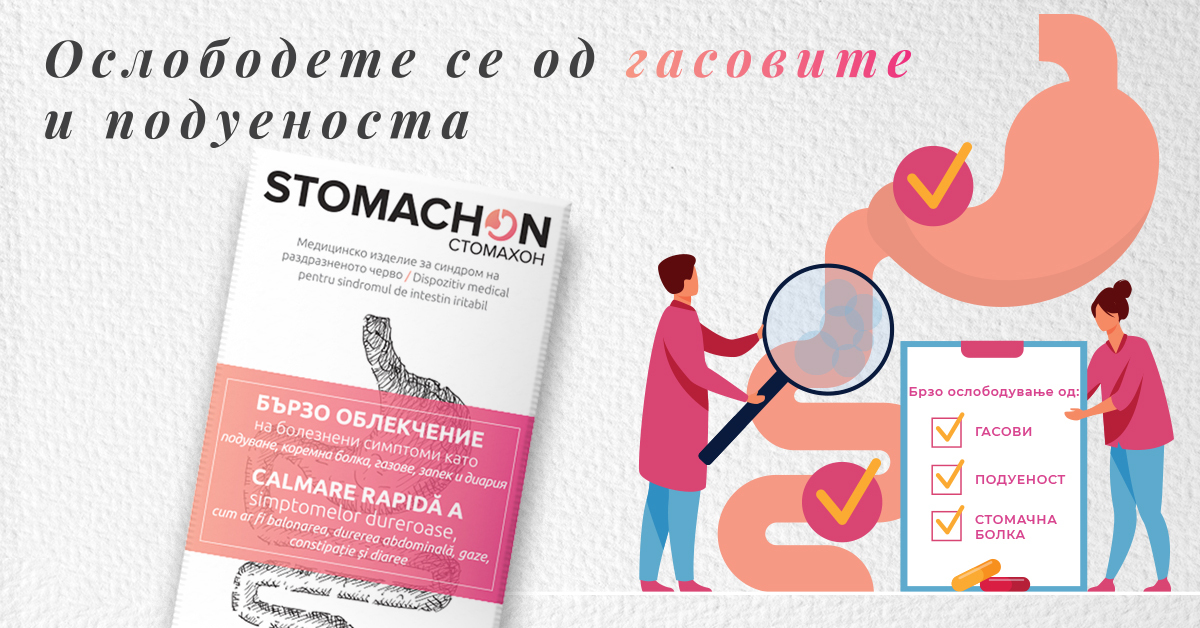 Исклучително важен додаток на горенаведените мерки може да биде новиот Stomachon: иновативен производ кој ублажува гасови, подуеност, болки во стомакот, дијареја и запек кај пациенти со синдром на иритирано дебело црево.