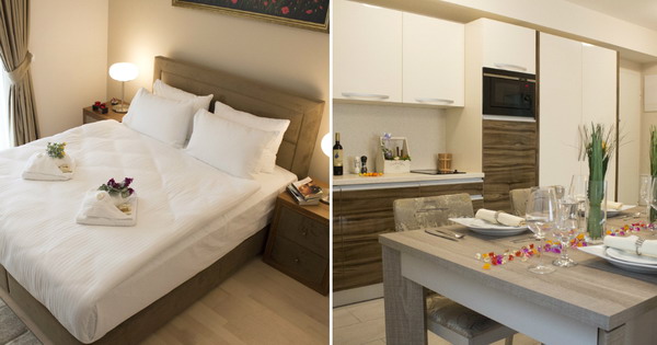 Stone Bridge Suites апартманите имаат комплетно опремена кујна подготвена да одговори на кулинарските потреби на гостите, кои уживаат во приготвувањето на храна за себе и своите блиски. Спална соба опремена со пространи кревети со софистициран, анти-алергиски душек. Бања со сите неопходности за приватниот престој на гостите и нивните семејства. Елегантен дневен престој, со пространа гарнитура, ЛЕД ТВ приемник со голем избор на сателитски програми и панорамски поглед кон градот и околните планини.