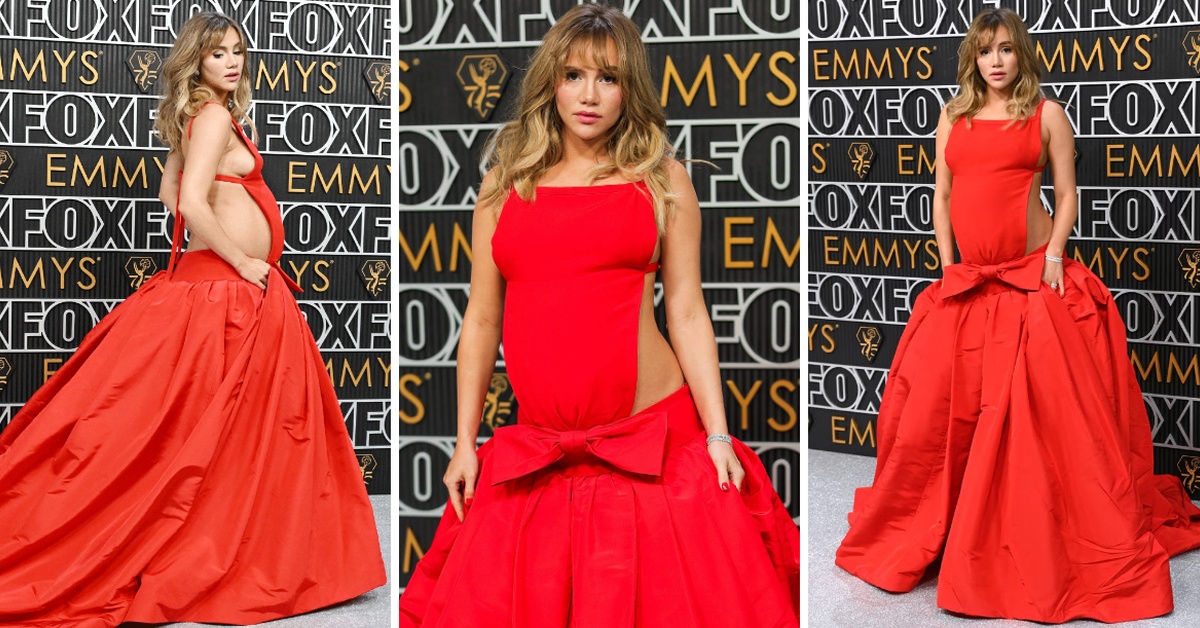 32-годишната ѕвезда го истакна пораснатото трудничко стомаче во невообичаена креација на доделувањето на Еми наградите во Лос Анџелес. Црвениот фустан бил специјално прилагоден за нејзиното тело, а истиот е дел од колекцијата висока мода на брендот Валентино.
