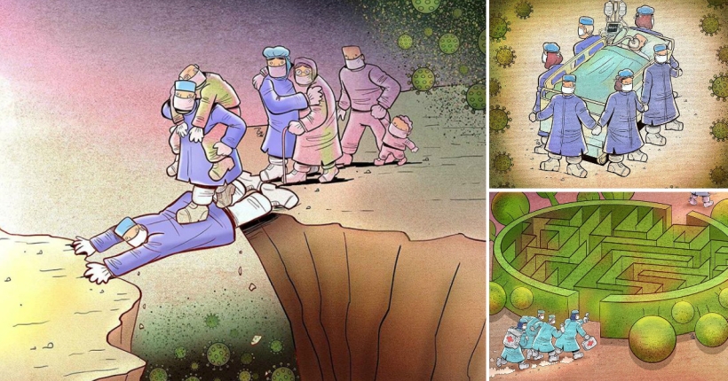 Суровата реалност и храбрите херои во време на коронавирус низ илустрациите на артист од Иран
