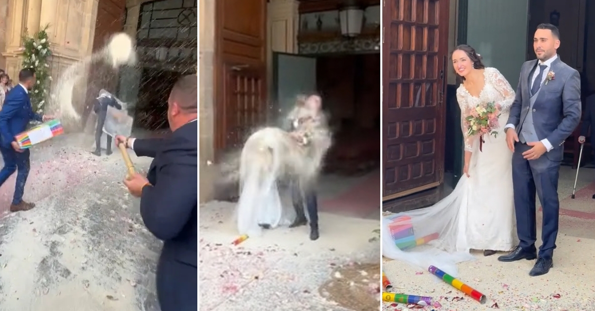 Гости на шпанска свадба го шокираа светот, фрлајќи куп ориз врз младенците.
