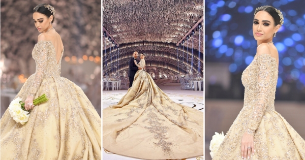Спектакуларниот цветен таван и сензационалната венчаница мамеа воздишки кај стотиците гости. Раскошниот фустан на прекрасната невеста е дело на талентираниот Зухаир Мурад.