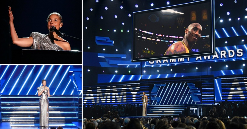 „Еве сме тука, на најголемата музичка ноќ, славејќи ги најдобрите артисти. Но, да бидам искрена со вас, сите ние чувствуваме голема тага во моментов, бидејќи денес Лос Анџелес, Америка и целиот свет изгуби херој. И ние буквално стоиме тука, со скршени срца, во куќата која Коби Брајант ја изгради.“