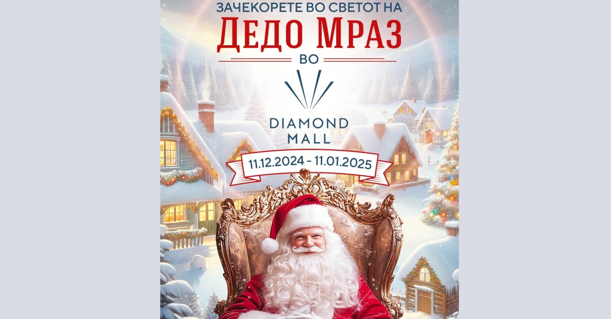 Оваа година, новогодишната магија за најмладите и нивните семејства со посебен сјај пристигна во Дајмонд мол. Од 11 декември, па сѐ до 11 јануари во новата 2025-та, децата ќе можат да уживаат во радостите што ги носи Светот на Дедо Мраз и во изненадувањата и доживувањата кои тој ги нуди.