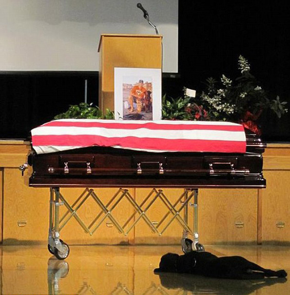 Фотографијата е сликана на погребот на војник кој загинал во Авганистан. Неговото куче Хоуки не го напуштило дури ни по смртта и во текот на емотивниот погреб лежело покрај неговиот ковчег.