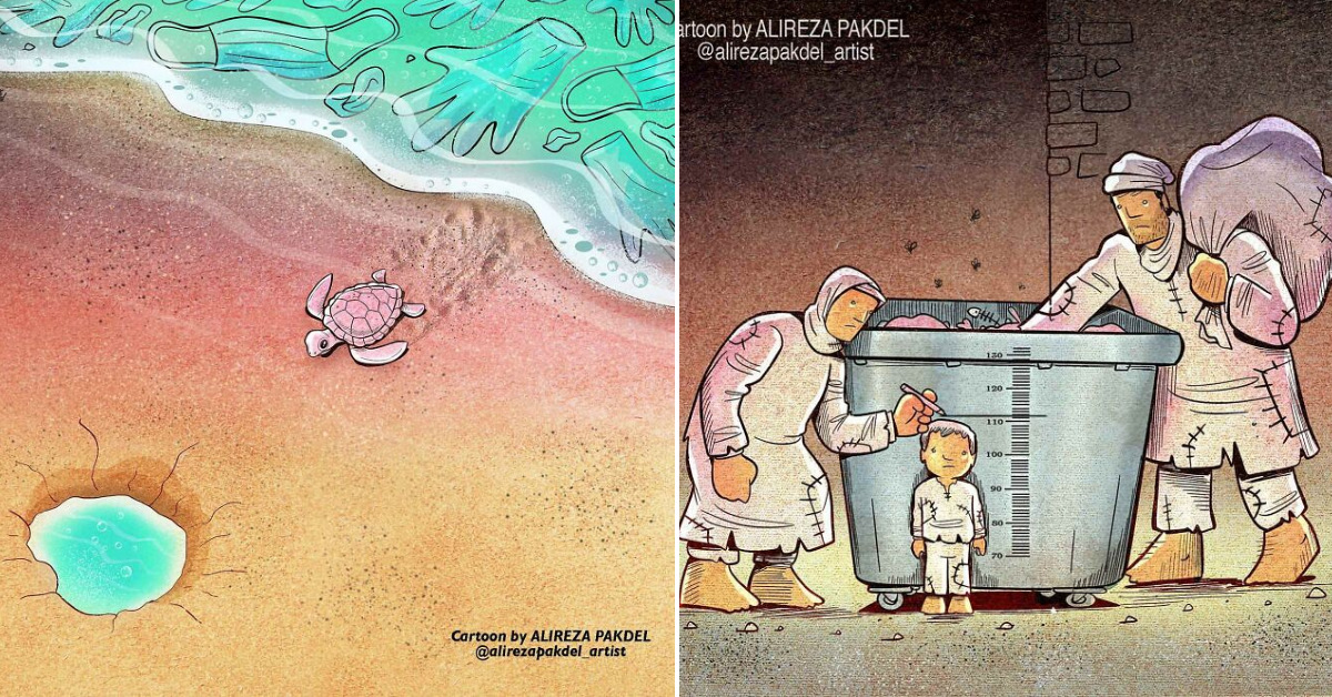 Талентираниот артист од Иран создава илустрации кои ја прикажуваат суровата реалност и глобалните проблеми со кои сите ние се соочуваме.