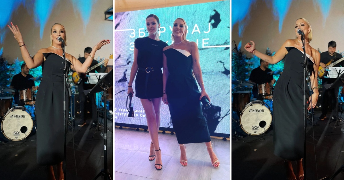 Тодевска се појави на сцената во црно-бел фустан, а подоцна позираше и со својата пријателка Каролина Гочева.