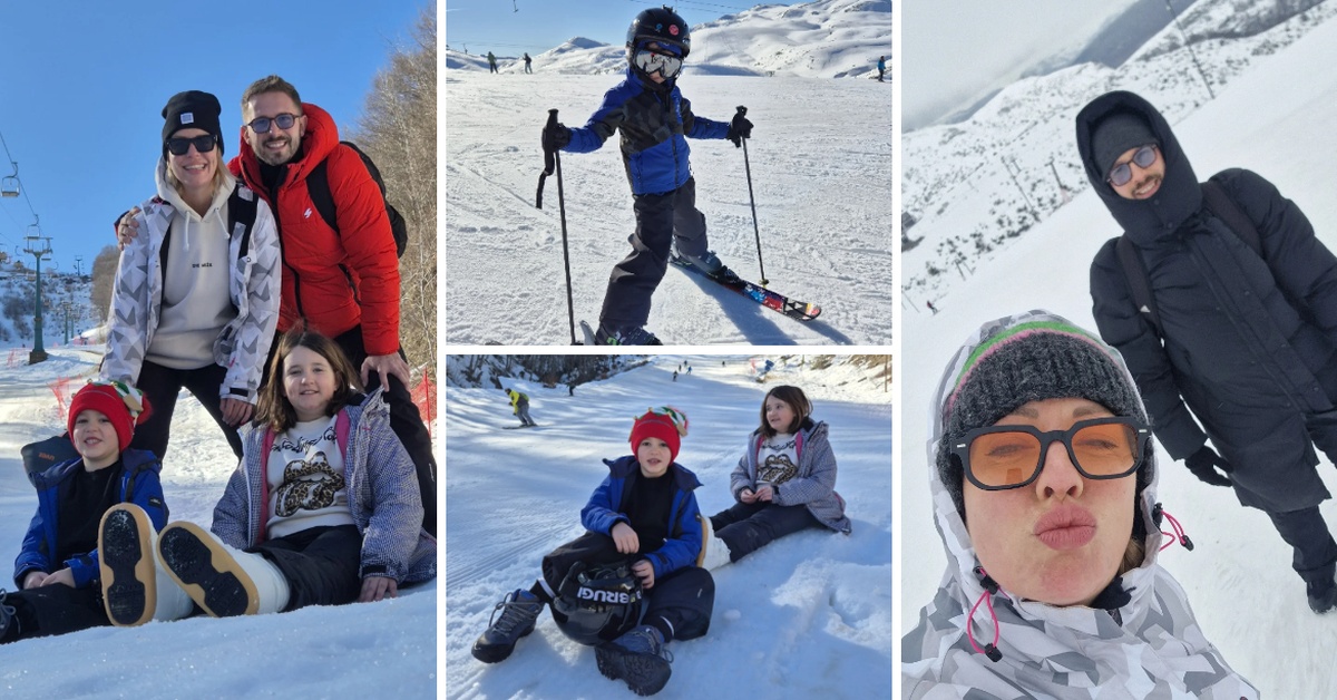 Синчето и ќерката на Тамара учеа да скијаат и добија диплома за завршената скијачка школа.