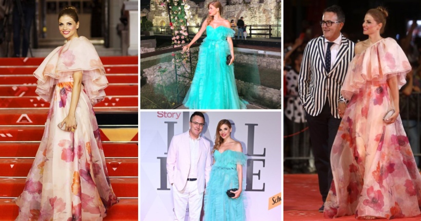 Славниот хрватски пар присуствуваше и на забава организирана во рамките на фестивалот. За оваа прилика, Лејла избра сина креација од дизајнерот Иван Алдук.
