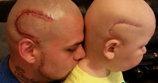 Грижлив татко си истетовира на главата „лузна“ идентична на лузната од операција на неговиот син за да му ја врати изгубената самодоверба.