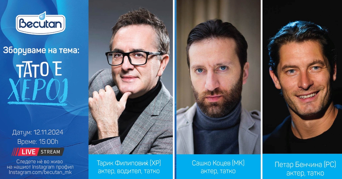 „Тато е херој“ е еден од панелите на настанот кој ќе биде пренесуван во живо на Instagram профилот на Becutan https://www.instagram.com/becutan_mk. Во негови рамки, ќе ги чуеме ставовите и искуствата на славни татковци од регионот. Имено, ќе гостуваат Тарик Филиповиќ, актер и водител на квизот „Милионер“ кој има две деца со сопругата Лејла, македонскиот комичен гениј Сашко Коцев кој е татко на ќерката Јоана од бракот со Смиљана и српскиот актер Петар Бенчина, познат по улогата на докторот во филмот „Тома“ кој има две деца со актерката Тамара Драгичевиќ.