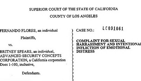 Тој тврди дека Бритни во неколку наврати се појавувала пред него гола. Во тужбата е опишано како еднаш Бритни облечена во проѕирен фустан од бела чипка се доближила до него, намерно ја испуштила запалката од рацете и се наведнала да ја земе, со што ги раскрила гениталиите пред Флорес. Уште во тужбата се вели дека ваквата постапка предизвикала шок и одвратност кај Фернандо.