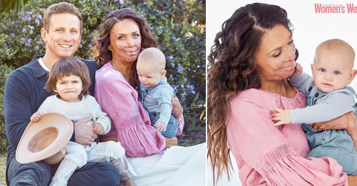 33-годишната Австралијка, која беше жртва на пожар за време на маратон во 2011 година, со широка насмевка позираше покрај 2-годишниот Хакаваи, 9-месечниот Рахити и саканиот Мајкл Хоскин, кој никогаш не помислил да ја напушти и бил постојано покрај неа по несреќата.