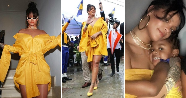 На настанот, Ријана се појави во комплетно жолт стајлинг, кој вклучуваше необична креација од брендот Hellessy и жолти чантичка и обувки.