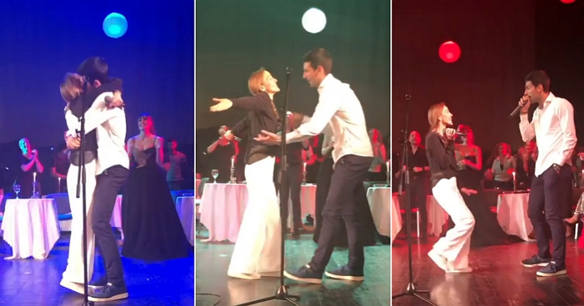 Новак Ѓоковиќ уште еднаш се покажа како добар шоумен. Српскиот тенисер во многу наврати не се воздржува да запее на огромна радост на неговите фанови, а овој пат во настапот му се придружи сопругата Јелена.