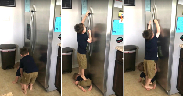 Во него, малите момчиња работејќи тимски „провалуваат“ во заклучениот фрижидер. Поголемото братче постојано му дава инструкции на помалото како да се намести правилно за тоа да може да го отвори безбедносниот механизам.