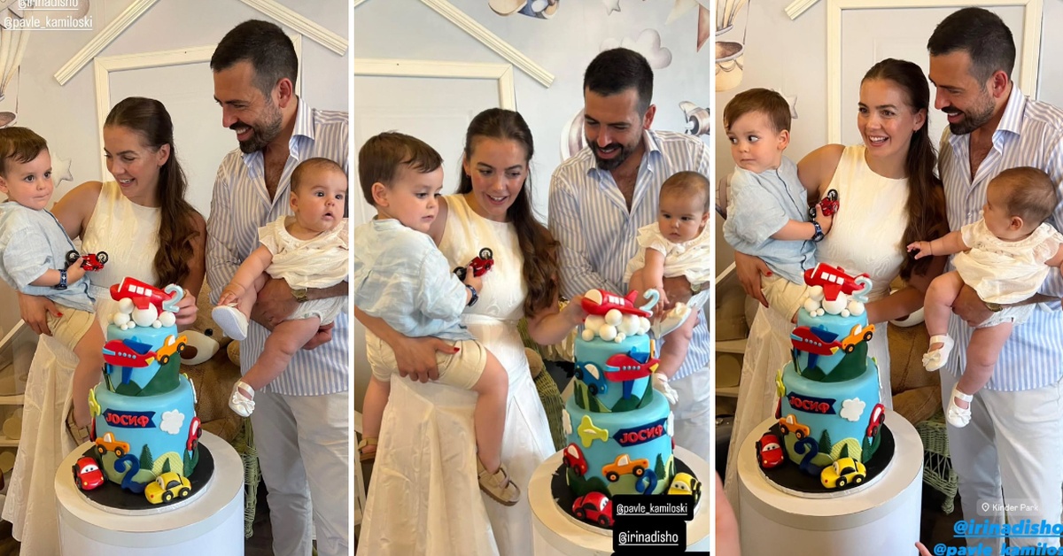 Торта на два ката и складни стајлинзи: Ирина и Павле Камилоски со двете деца на роденденот на синчето