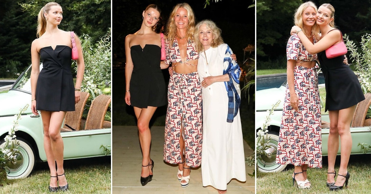 На вечерата во приватна резиденција, 50-годишната актерка позираше со 19-годишната ќерка Епл и со 80-годишната мајка Блајт Данер. Гвинет носеше креација од Gucci, додека Епл беше облечена во фустанче од Goop кое го искомбинира со чанта од Gucci.