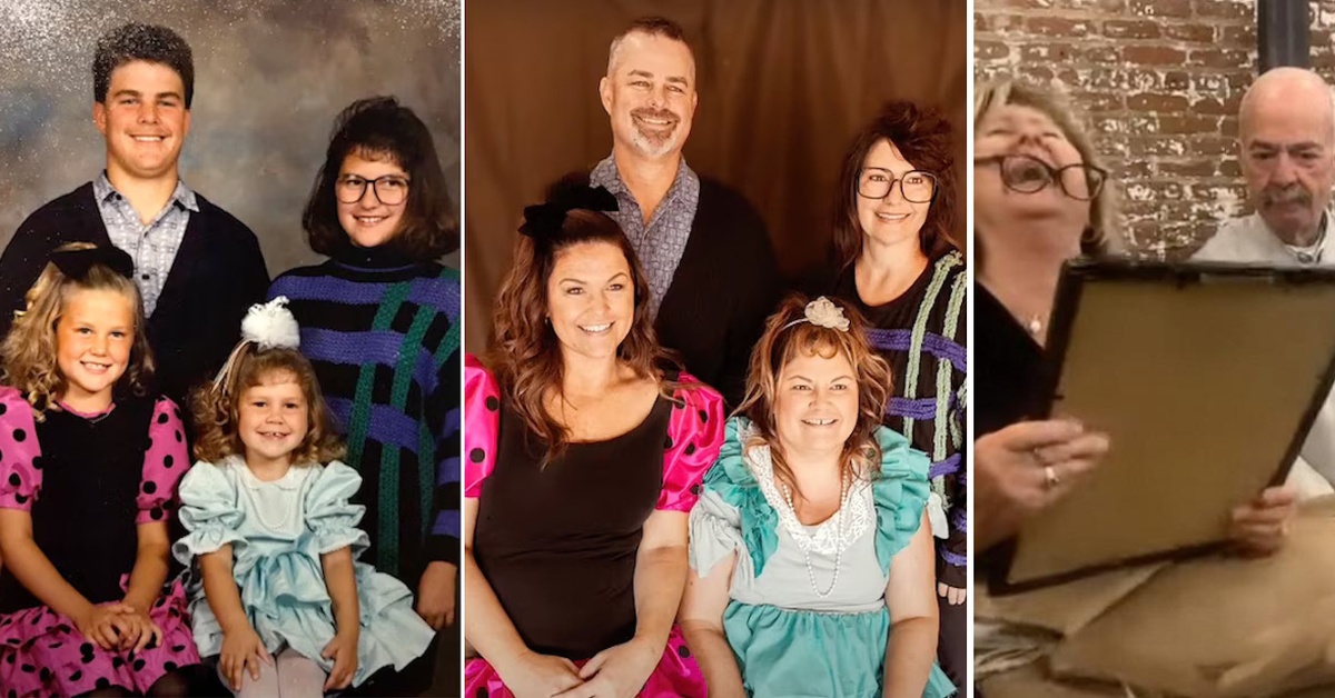 Тонија Ван Хаутен со нејзините две сестри и братот пресоздадоа смешна фотографија од нивното детство и им ја подарија на родителите за 50-годишнината од нивниот брак.