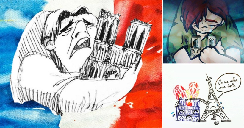 Поради огнени пламени, вчера за само неколку часа беше уништен голем дел од катедралата Нотр Дам во Париз. Додека пожарникарите се бореа со пламените јазици, артисти од целиот свет создаваа трогателни цртежи за ова историско богатство.