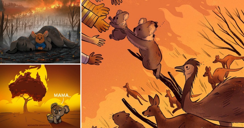 Додека Австралија се бори со пламените јазици кои се раширија низ целиот континент, артисти ширум светот го изразија своето сочувство преку уметност.
