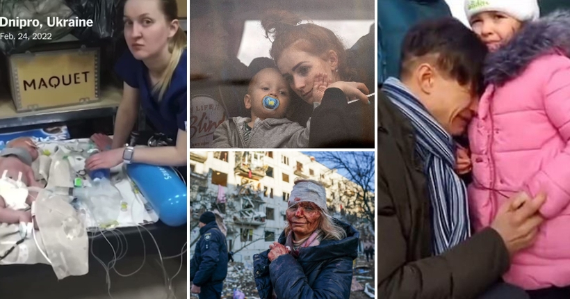 Бебиња од оддел за неонатална интензивна нега беа преместени во импровизирано засолниште на најдолното ниво на болница во Днипро, со цел да бидат заштитени од воздушните напади. Некои од новороденчињата се приклучени на кислородни боци додека персоналот се обидува да ги зачува во добро здравје.