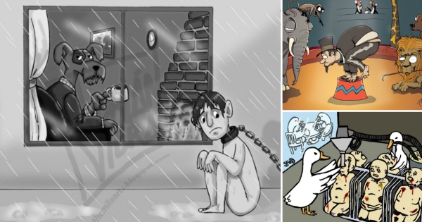 Трогателни илустрации ќе ве натераат да се замислите за начинот на кој луѓето ги третираат животните.