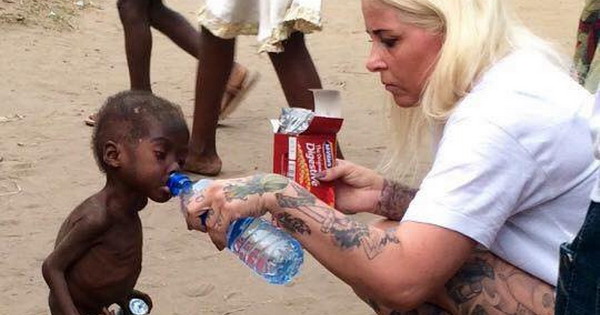 Трогателно: Хуманитарка му дава вода на мало детенце напуштено од семејството зашто верувале дека е вештер