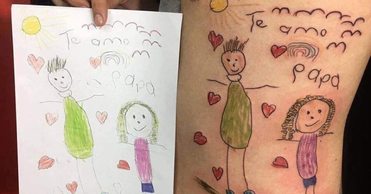 Грижливиот родител си го истетовира последниот цртеж кој малото девојче го нацртало пред да почине на рана возраст. „Те сакам тато“ - е испишано на цртежот.