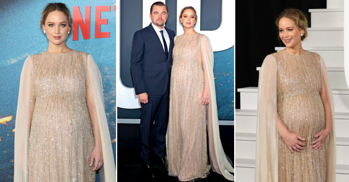На премиерата на нејзиниот нов филм „Don’t Look Up“ во Њујорк, 31-годишната актерка блескаше во златна креација со реси од Диор и накит од брендот Tiffany & Co.. Убавата актерка беше придружувана од својот колега Леонардо Дикаприо, кој позираше заедно со неа пред фоторепортерите.