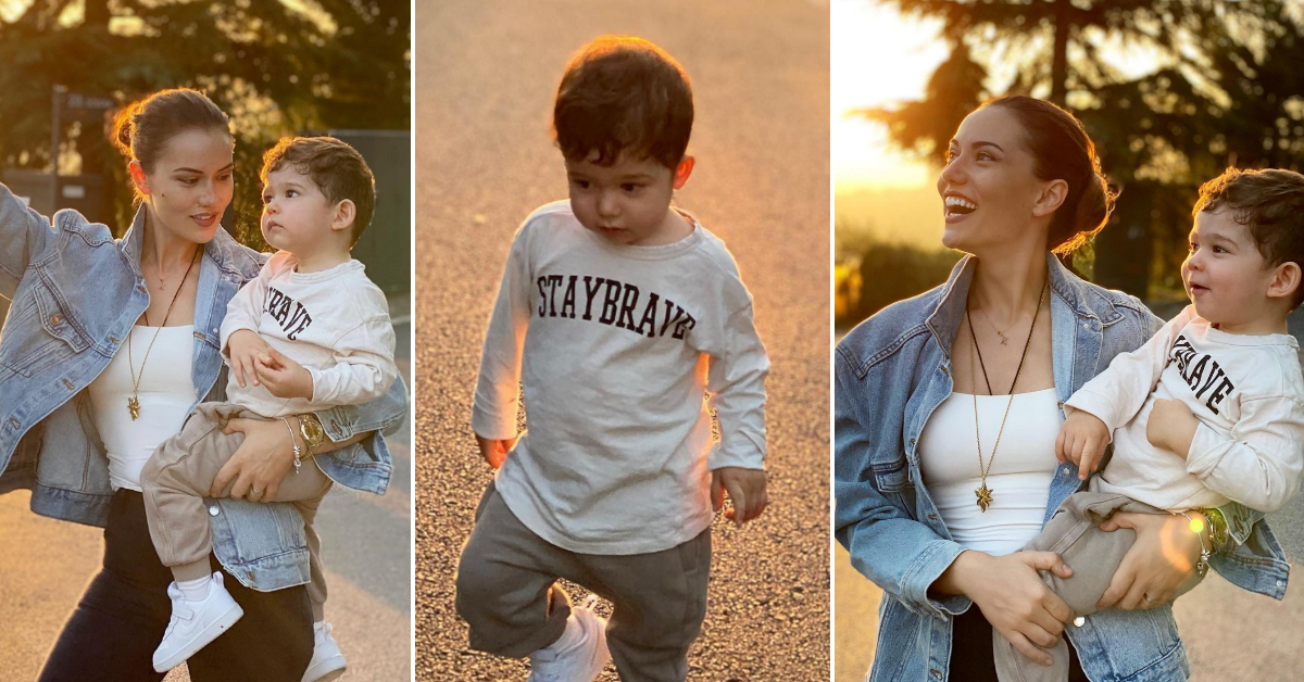 34-годишната турска актерка, позната по улогата на Неџла во серијата „Кога лисјата паѓаат“, сподели албум со неодоливи фотографии од пораснатото детенце. На нив, таа со широка насмевка позира заедно со едногодишното момче.