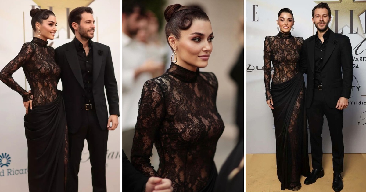 На свеченоста во Истанбул, 30-годишната турска актерка зрачеше со сексапил во црна креација со чипка. Како нејзина најголема поддршка, саканиот Хакан Сабанчи ја придружуваше на настанот.