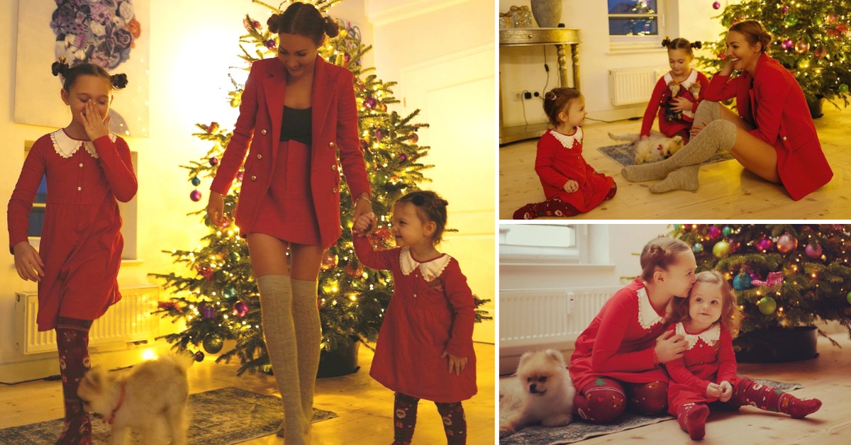 На нив, Мерјем позира во црвена комбинација покрај 8-годишната Лара и малата Лили, која наскоро ќе наполни 2 години.