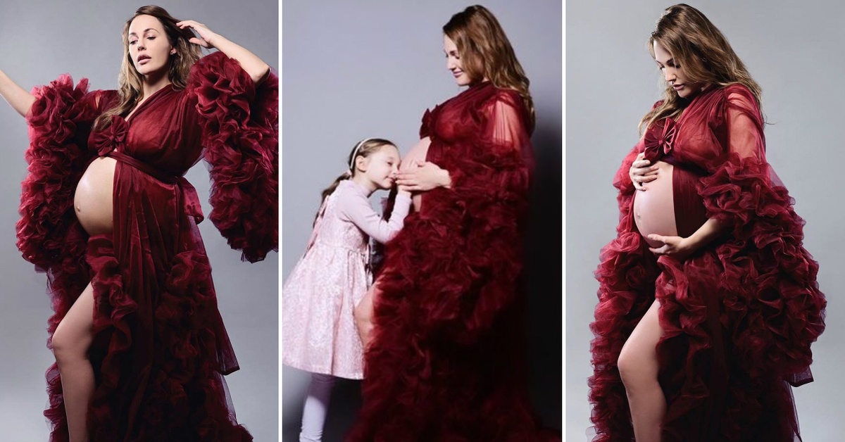 37-годишната ѕвезда го покажа трудничкото стомаче во последниот триместар од бременоста за фотосесија. На дел од фотографиите се појавува и нејзината ќеркичка Лара.