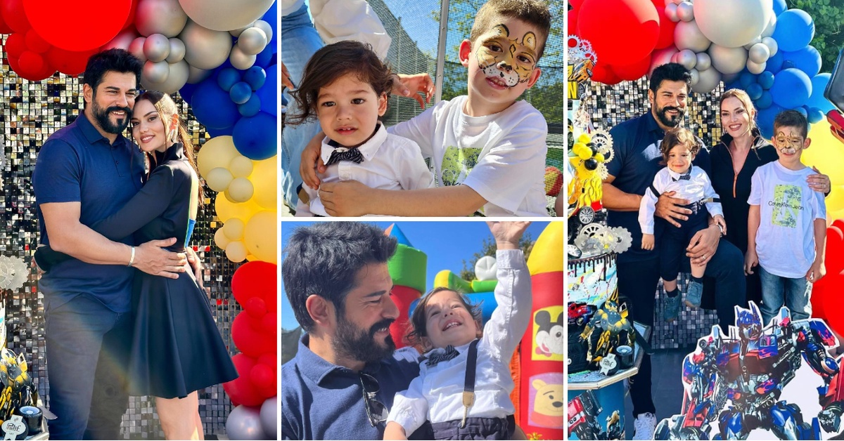 Ѕвездите од турските серии „Кога лисјата паѓаат“ и „Величествениот“ позираа со малите момчиња покрај големата роденденска торта.