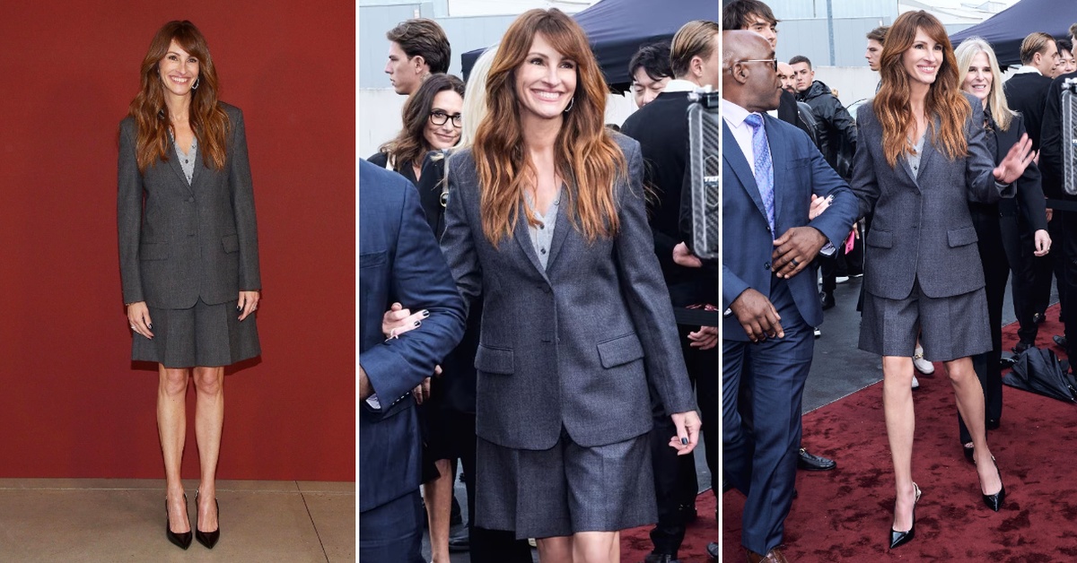 Ѕвездата од филмот „Pretty Woman“ со широка насмевка позираше пред фоторепортерите и докажа дека не ѝ треба гламурозна тоалета за да остави впечаток. Таа носеше невообичаен стилски костум со кратки панталони.