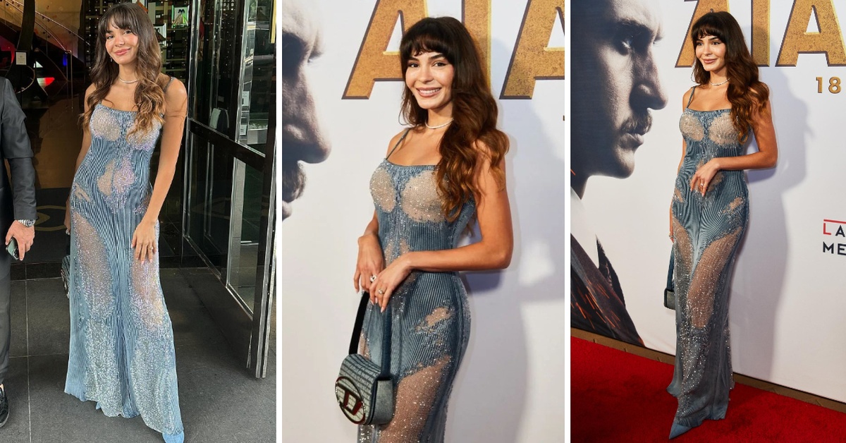 Шарматната актерка, која е позната по улогата на Рејан од серијата „Дива“, мамеше погледи во свечена сина креација.