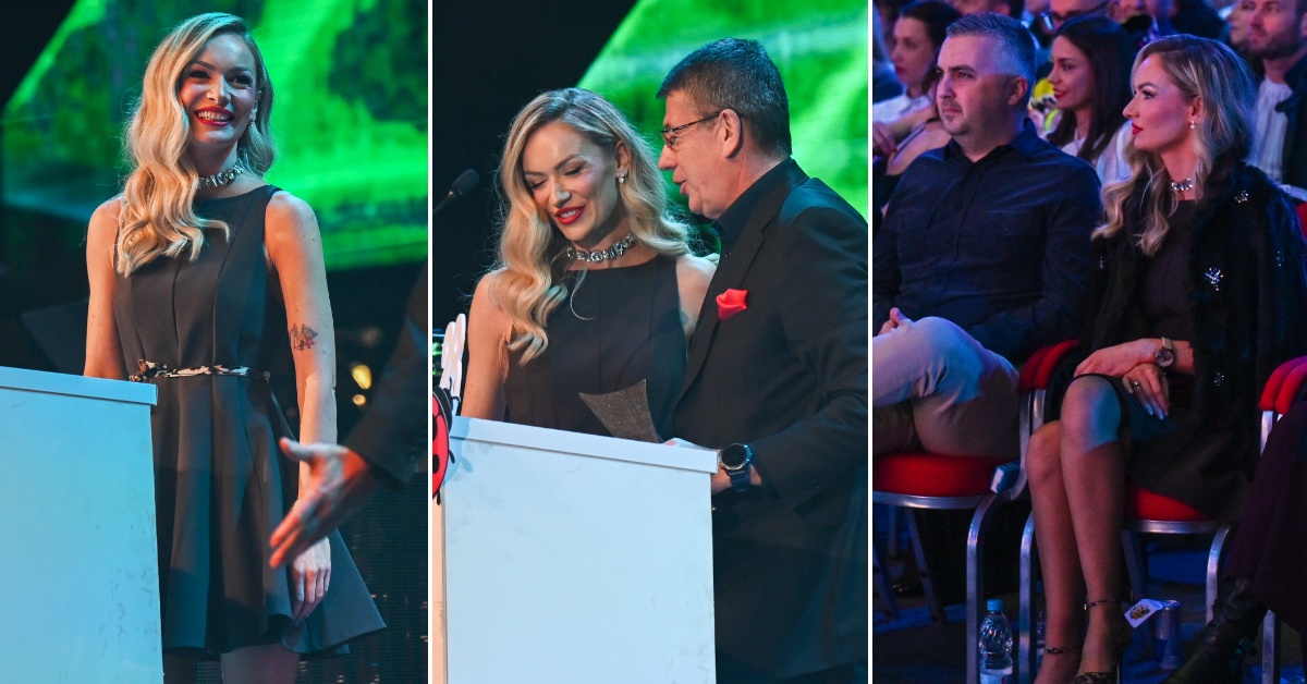 Јана Серафимова и нејзиниот сопруг Горан Петровски од првиот ред го следеа доделувањето на наградите Златна бубамара на популарноста.