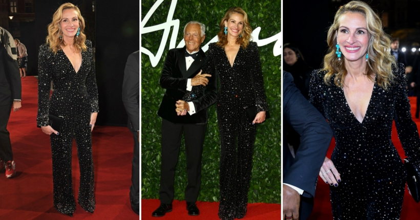 „Убавата жена“ сјае: Џулија Робертс во блескав комбинезон до Џорџо Армани на црвениот тепих на Британските модни награди