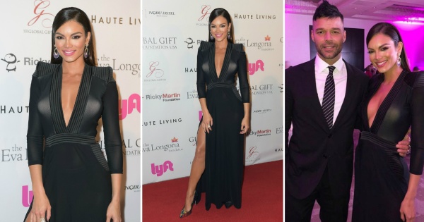 Ривера позираше со Ева Лонгорија и Рики Мартин, кои беа домаќини на настанот.