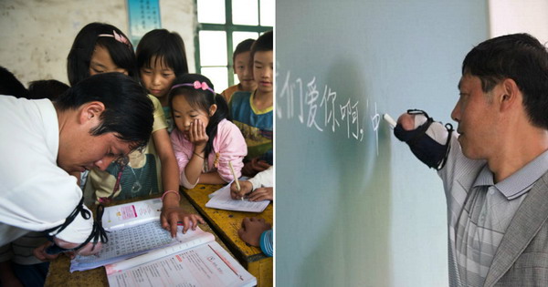Посветен учител од Кина, кој ги изгуби двете раце, пронајде начин да држи настава и покрај својот хендикеп. Тој им предава на деца во училиште кое останало без наставници.