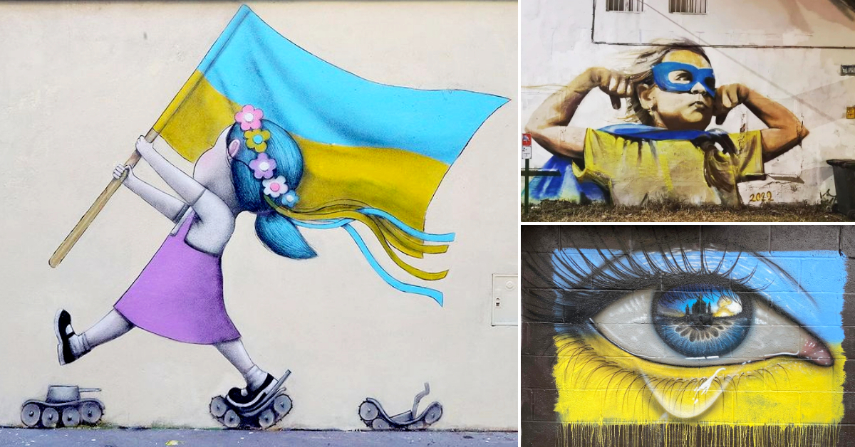 Голем број улични уметници создадоа емотивни цртежи за да го искористат своето влијание и да го насочат вниманието кон случувањата во Украина.