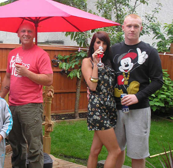 Ема во прегратката на својот свршеник Луис. Лево е таткото на Луис, Дарен.