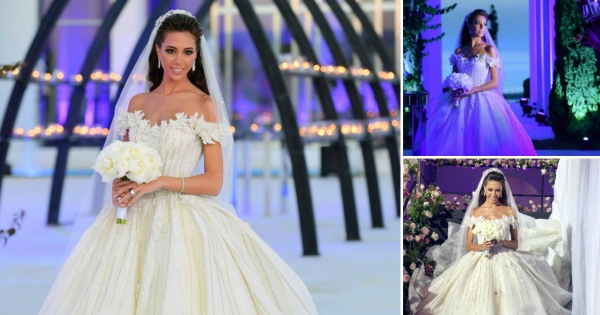 Венчаницата, која е дело на либанскиот дизајнер Зијад Накад, ѝ донесе огромен бран комплименти на Јасмин.